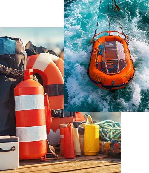Un radeau de survie hautement résistant reste plié dans son conteneur étanche fixé sur la plage arrière. Son déclenchement automatique gonfle instantanément deux boudins superposés capables d’accueillir huit naufragés. À l’intérieur, des rations d’eau ensachées et des fusées de détresse lumineuses assurent l’attente des secours lors d’une avarie majeure au milieu de l’océan.